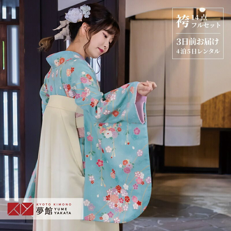 レディース レンタル 二尺袖 先生 高校生 女性 女 セット 大学 袴 レンタル レンタル レンタル 袴 フルセット 卒業式 女 袴セット 大学 G790水色 花の丸枝垂れ桜 袴レンタル ハカマ 着物 二尺袖 レディース 京都着物レンタル夢館